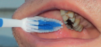 1: Sæt bagsiden af tandbørstehovedet på indersiden af kinden, eller2: Føl med en finger (med handske på) i kindslimhinden